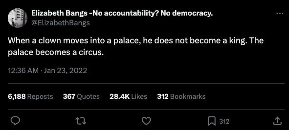 But anyway, a day later, academic Elizabeth Bangs reworked the tweet to reference UK’s version of Trump, PM Boris Johnson and his many top officials resigning, and quickly went viral: