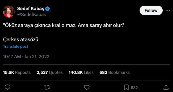 This came into mainstream circulation when prominent Turkish journalist Sedef Kabaş was arrested 14 hours after this tweet: